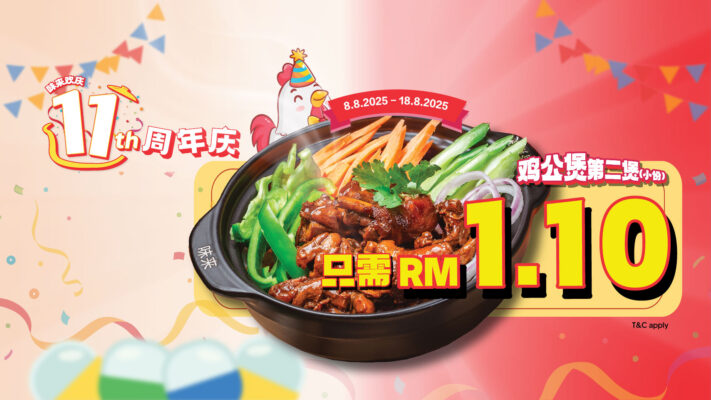 说到鸡公煲,你的脑海里是不是马上浮现出那锅热辣咕噜、香气扑鼻的好味道?没错,陪伴大家整整11年的味来重庆香辣煲要过生日啦! 这一年又一年,多少次和朋友围在一起吃鸡公煲,边吃边聊,从学生变打工人,从约会到家庭聚餐,味来见证了无数人的青春和成长,也“煲”出了好多生活的回忆。 11周年庆特别福利 | 第二煲只需 RM1.10! 这次我们决定把快乐加倍:8月8日到8月18日,凡到味来堂食消费,点小份鸡公煲,第二煲只需RM1.10!真的不是开玩笑,是直接RM1.10!和朋友、家人一起来,直接一桌两锅,吃得更爽! 每桌限享一次,别忘了带上最爱的人来一起庆祝哦~ 回馈老友,也欢迎新朋友 没有你们这些年一路的支持,味来也走不到今天。每一个老顾客、每一次光顾,都是我们成长的动力。这一次周年庆,味来想把这份温暖、实在的好味道,继续传递下去。 如果你还没试过味来的鸡公煲,真的很适合趁着周年庆约一波,不只价格实惠,店里氛围也更热闹,说不定还能遇到隔壁桌“同是味来粉”的老友呢! 分店遍布全马,家门口就有味来 想品尝鸡公煲?不用跑远,味来分店已经覆盖新山、槟城、怡保、KL、麻坡等多个城市。不管你在哪,都能吃到热腾腾的鸡公煲,超方便! 【周年庆活动详情】 11年,说短不短,有你才完整 [...]