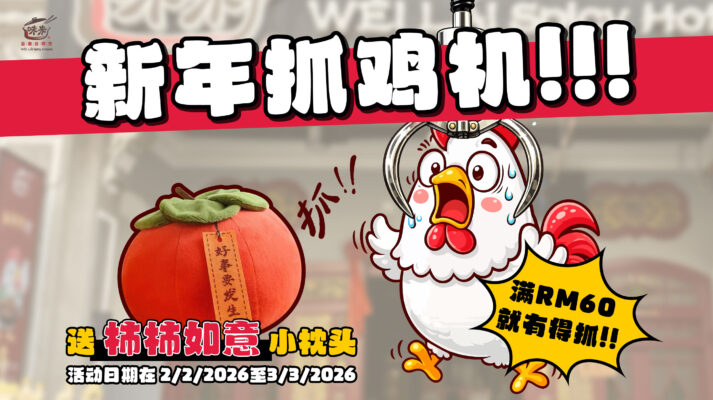 为了迎接农历新年,味来重庆香辣煲特别上线新年限定的 抓鸡机(抓娃娃机)。只要在店内单笔消费满 RM60,即可获得 一次免费抓娃娃机机会。成功抓中,就能把一颗 「柿柿如意」小枕头 带回家,数量有限,送完为止。 抓到的不是普通娃娃,而是象征吉祥的新年小物。柿柿如意 寓意着: 🍊 事事顺利 🍊 样样都赢 🍊 新的一年好运旺旺来 小枕头手感柔软,摆在家里或办公室都很应景,也很适合新年送礼 [...]
