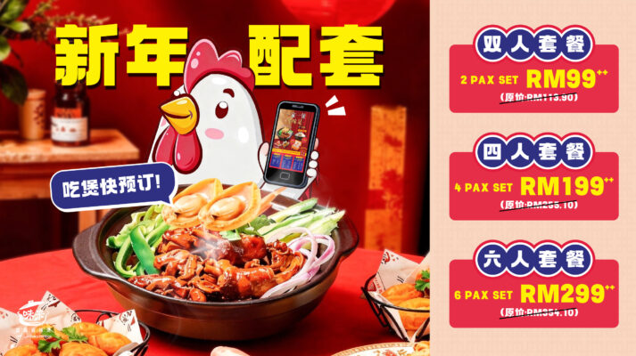 Wah~农历新年终于到啦!🎉过年最怕不是拜年,而是在厨房忙到团团转😂今年换个轻松的方式——一煲搞定,全家围炉吃得开心又有年味。 想要丰盛、不用自己煮、又超有 CNY feel 的团圆饭?【味来重庆香辣煲 CNY 套餐】一定要安排!🥘 🧑🤝🧑双人套餐 RM99++(原价 RM113.90)✅菜单:鲍鱼鸡公煲(大),鸡肉片(6片),空心菜,金针菇,猪肉丸,冬粉,炸腐皮,香芋地瓜球,白米饭*2 👨👩👧👦 四人套餐 RM199++(原价 RM225.10)✅菜单:鲍鱼鸡公煲(大)_2,鸡肉片(6片),猪肉片(6片),猪肉丸,鱼丸,鱿鱼花,杏鲍菇,千张豆皮,小白菜,刀削面,炸迷你油条,香脆牛奶卷,白米饭_4 👨👩👧👦👦👦 [...]